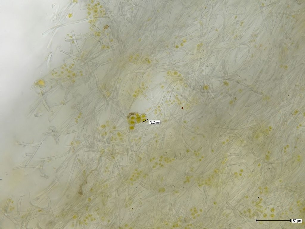 nein, ich habe nur den Fruchtkörper geschnitten, Hintergrund war ja eine Anfrage nach Querschnitten von den Röhren. Der Rest ist Beifang eines interessierten Mikroskopikers. :)