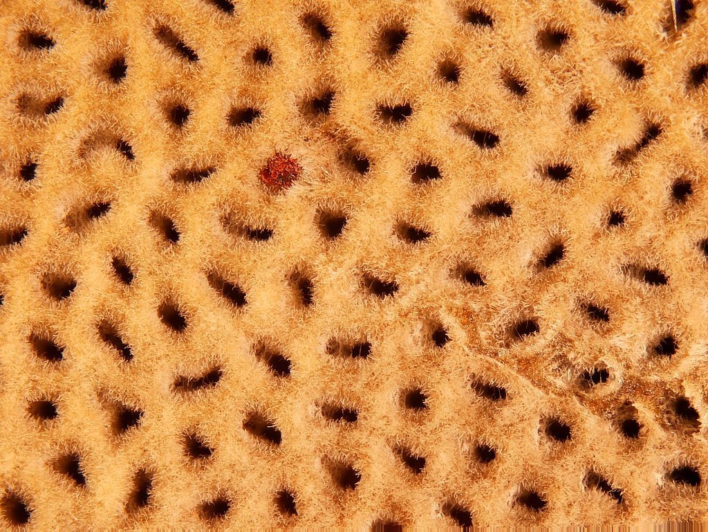 Wie auch bei den Röhren, habe ich Aufnahmen vor und nach dem Bleichen gemacht, die ich hier gegenüber stellen möchte. Die Hutkruste ist typisch für den Zunderschwamm und ich denke auch sie dient dazu, das Röhrengewebe und die Sporen vor Nässe zu schützen.