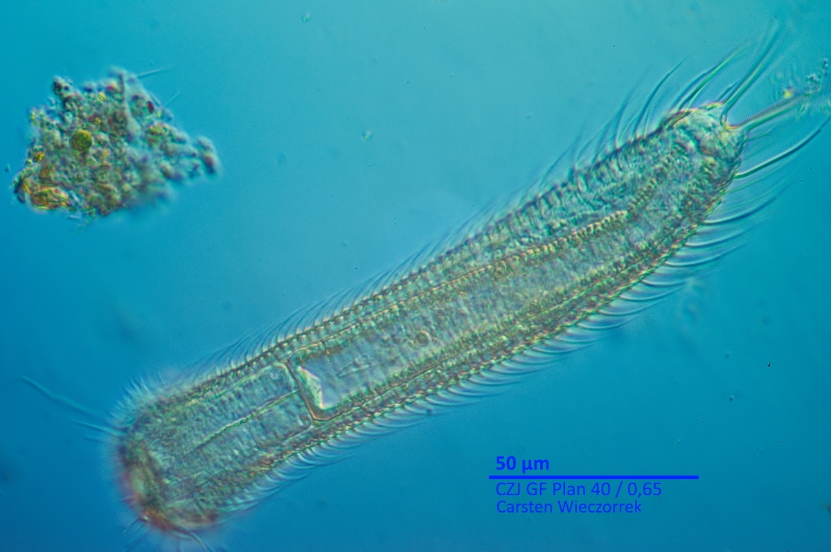 auch ein schönes Exemplar der Art Lepidochaetus zelinkai (früher Chaetonotus zelinkai, Du lagst also mit Deiner Gattung ganz richtig). Das ist eine der Arten, die Brutpflege betreiben (https://www.mikroskopie-forum.de/index.php?topic=38104.0).