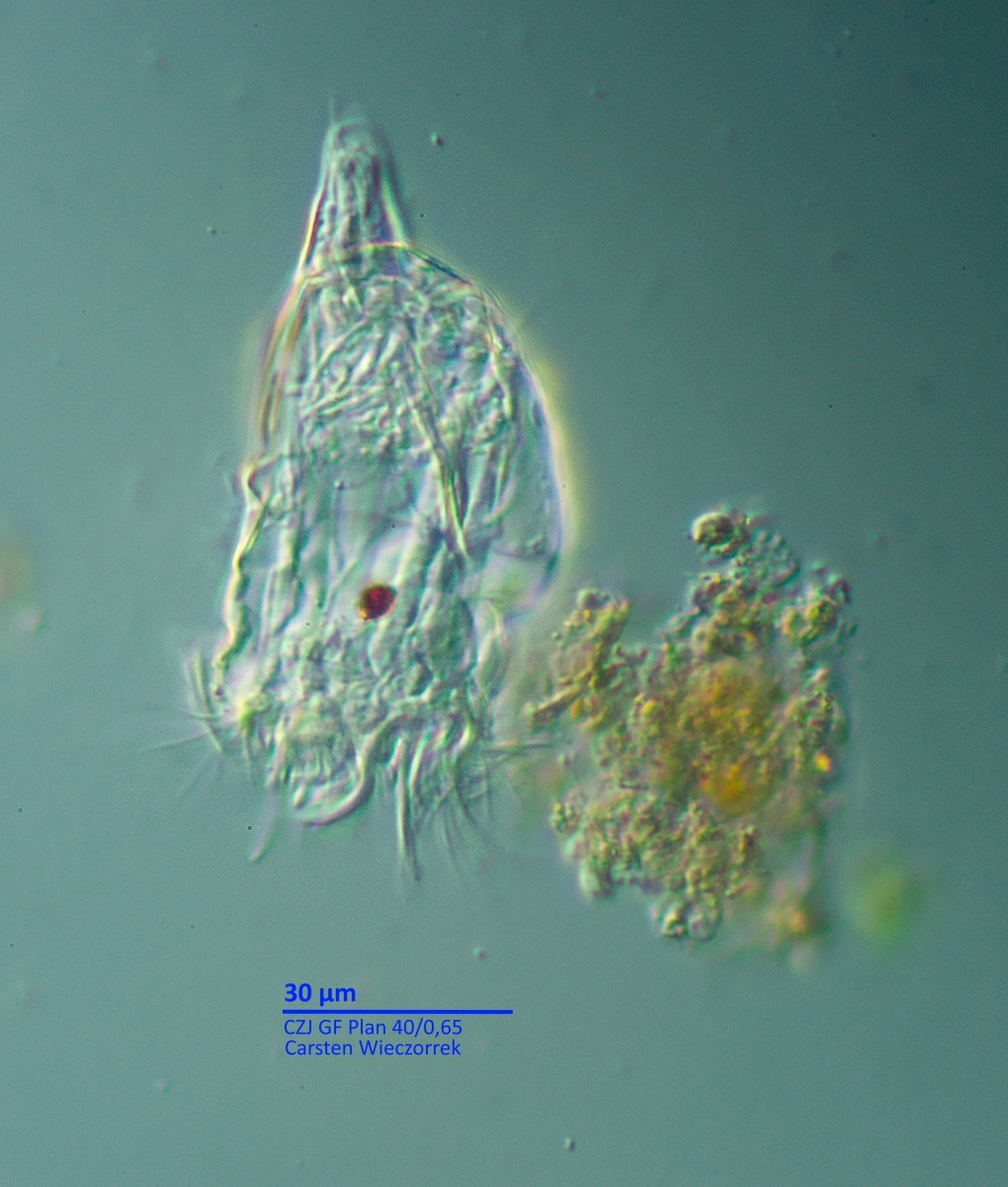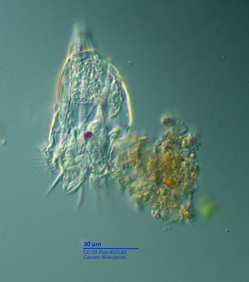 ich habe in einer Probe ein Rädertier gefunden, das ich recht nett finde. Für eine Bestimmung langt es sicher nicht.