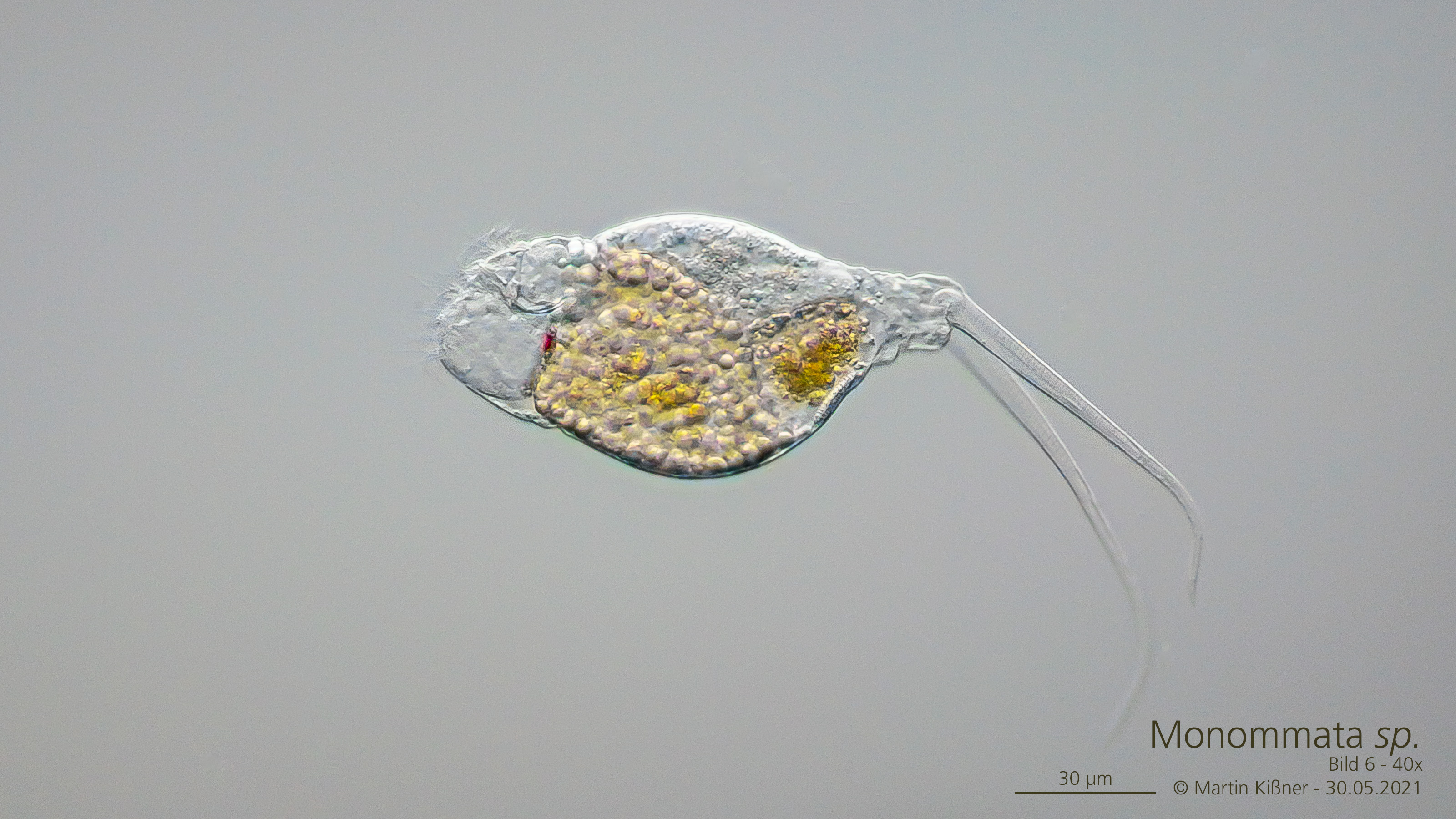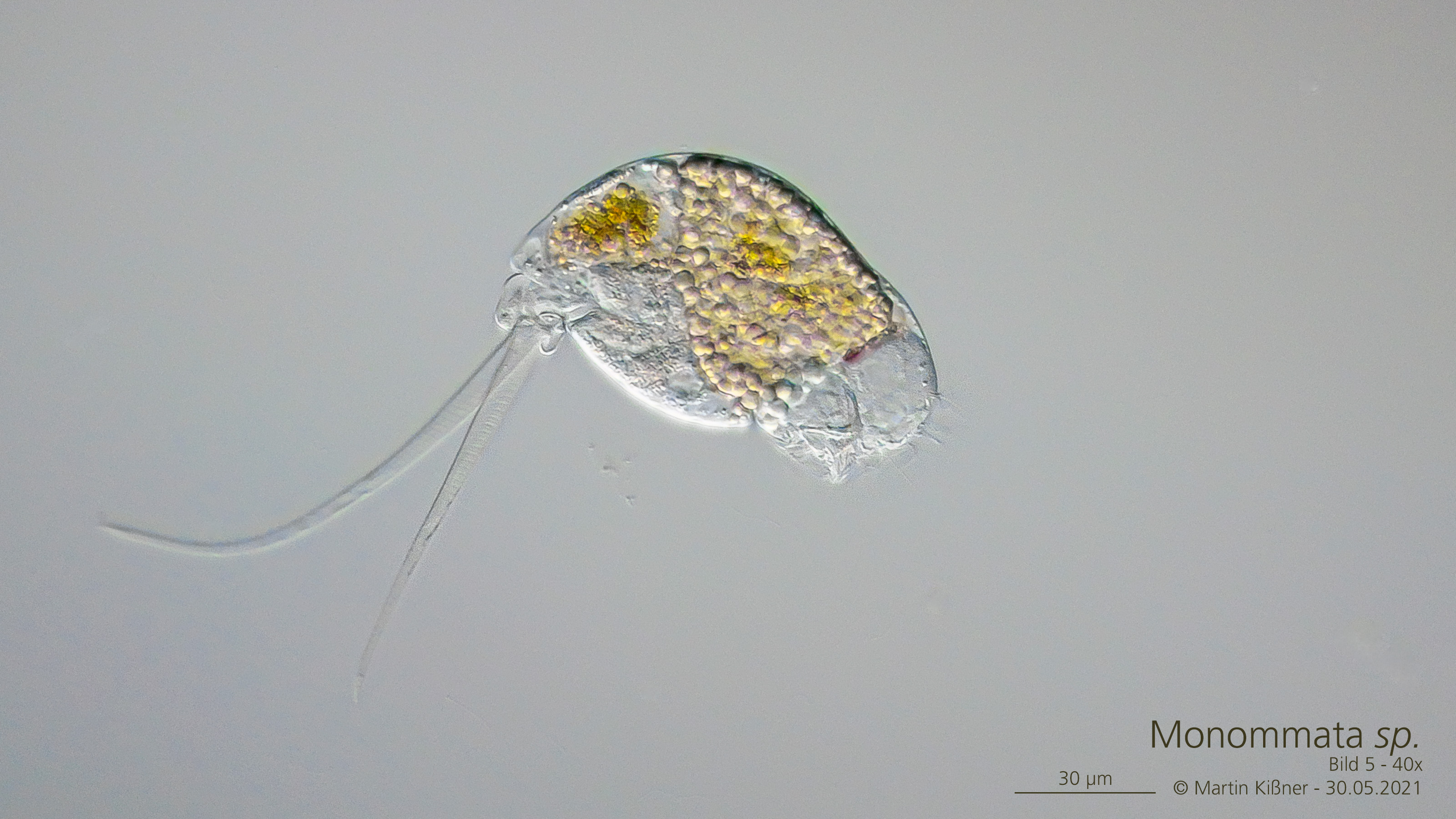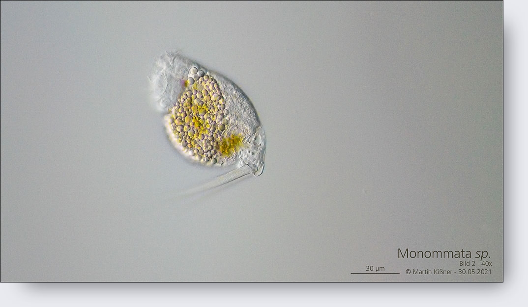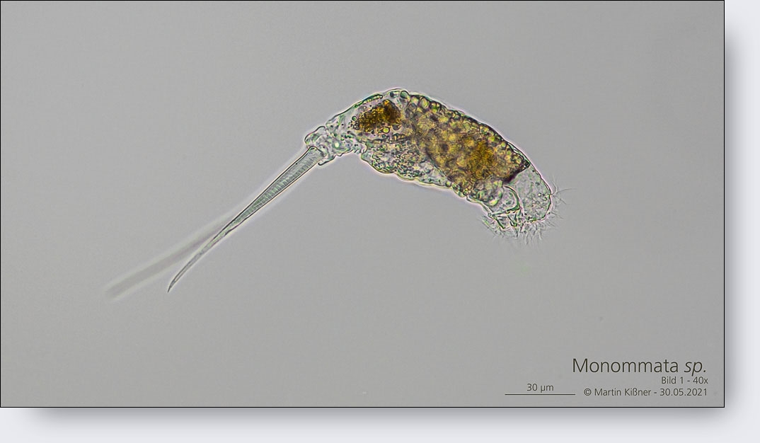ich sehe gerade deinen Beitrag. Gerade habe ich in einer Moorwasserprobe aus dem Bayerwald die gleiche Spezies entdeckt. Nach Streble/Krauter (Leben im Wassertropfen) und Michael Plewka (https://www.plingfactory.de/Science/Atlas/KennkartenTiere/Rotifers/01RotEng/source/Monommata%20longiseta.html) ist es eindeutig M.longiseta.