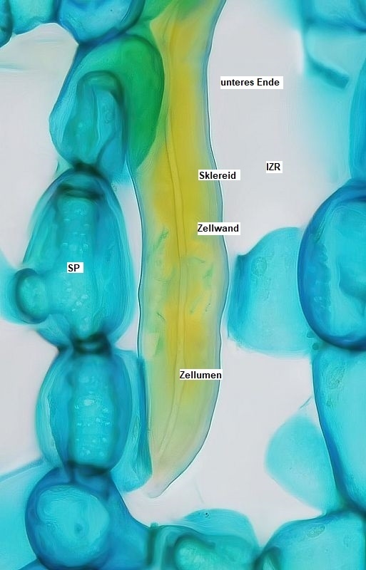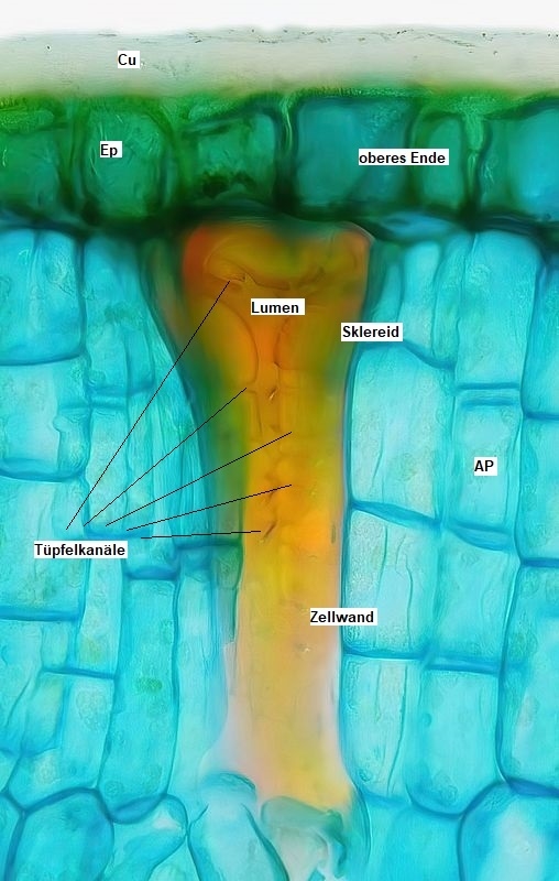 Um die noch weniger differenzierten Jugendstadien der Sklereiden zu sehen, muss man wohl im Frühjahr ein ganz frisches Blatt schneiden.