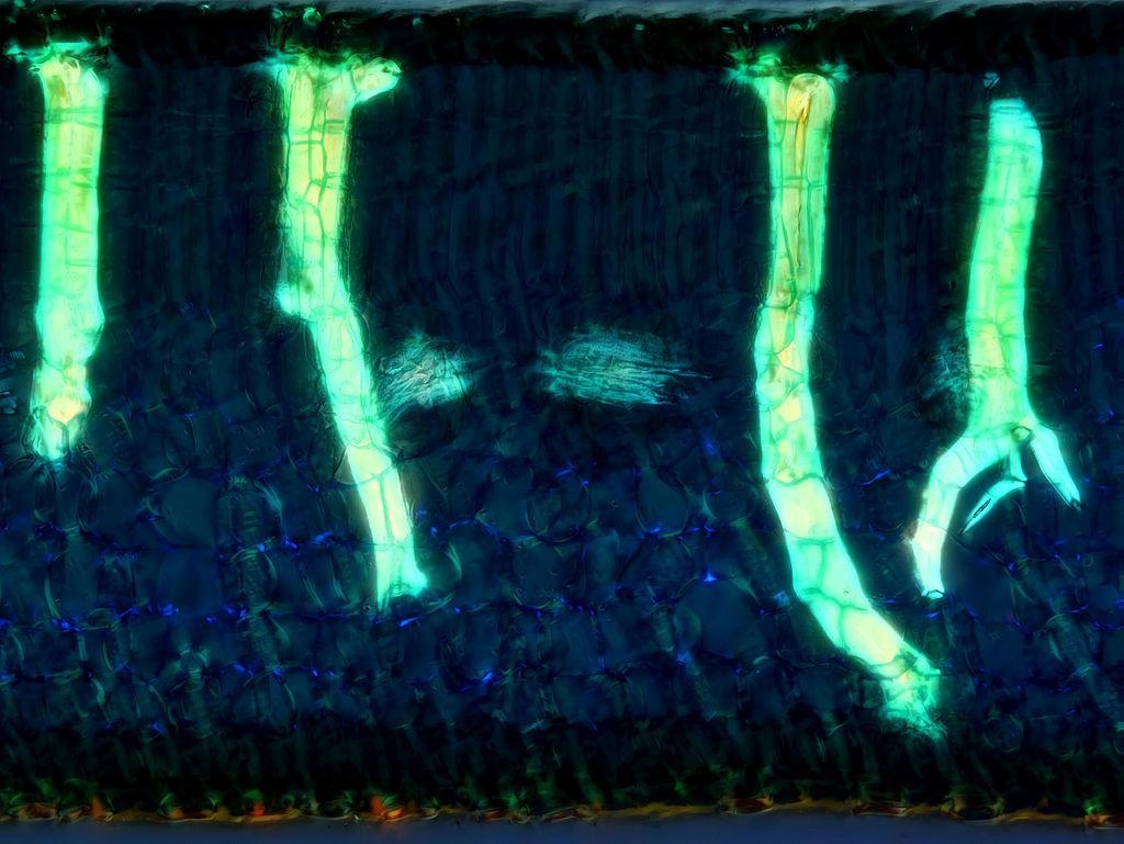 Schauen wir zum Schluss noch einmal auf eines der mehrzelligen Drüsenhaare an der Blattunterseite: