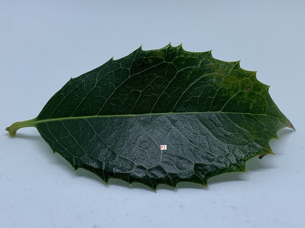 Wir beginnen mit Probe 1 (P1), dem ausgewachsenen, glattrandigen Blatt
