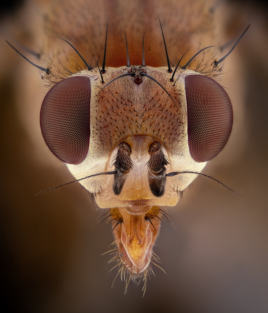 Typisch bei dieser Art ist, dass die Reihe langer Haare neben den Facettenaugen fehlt.