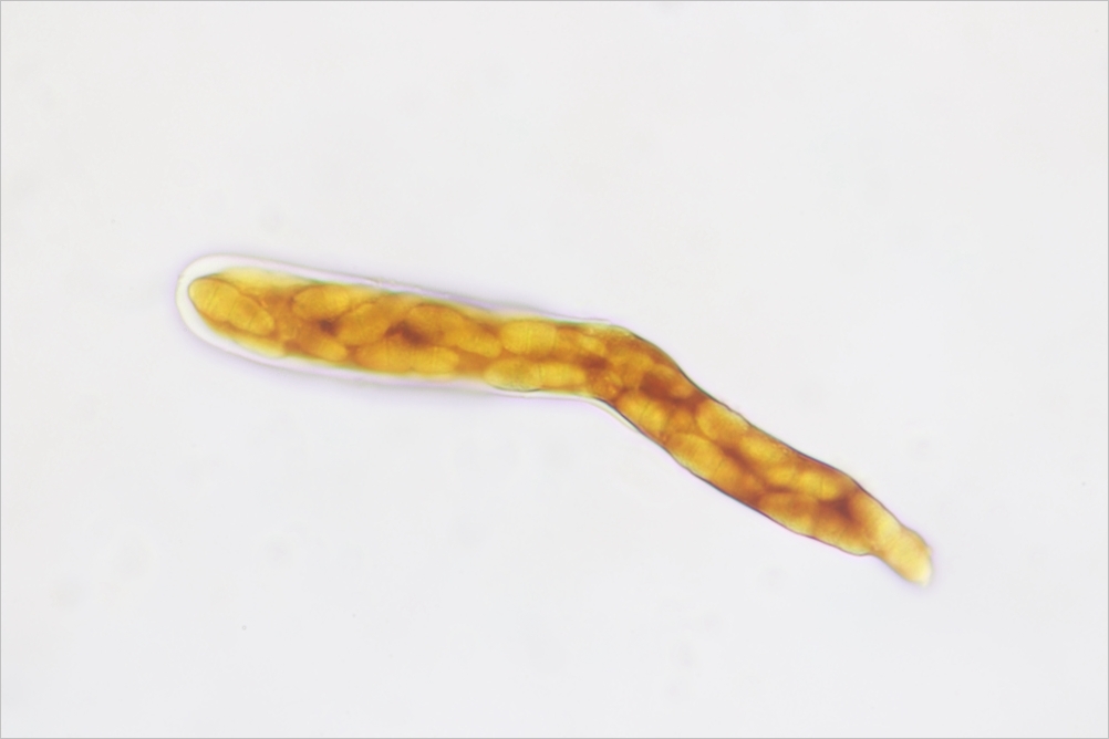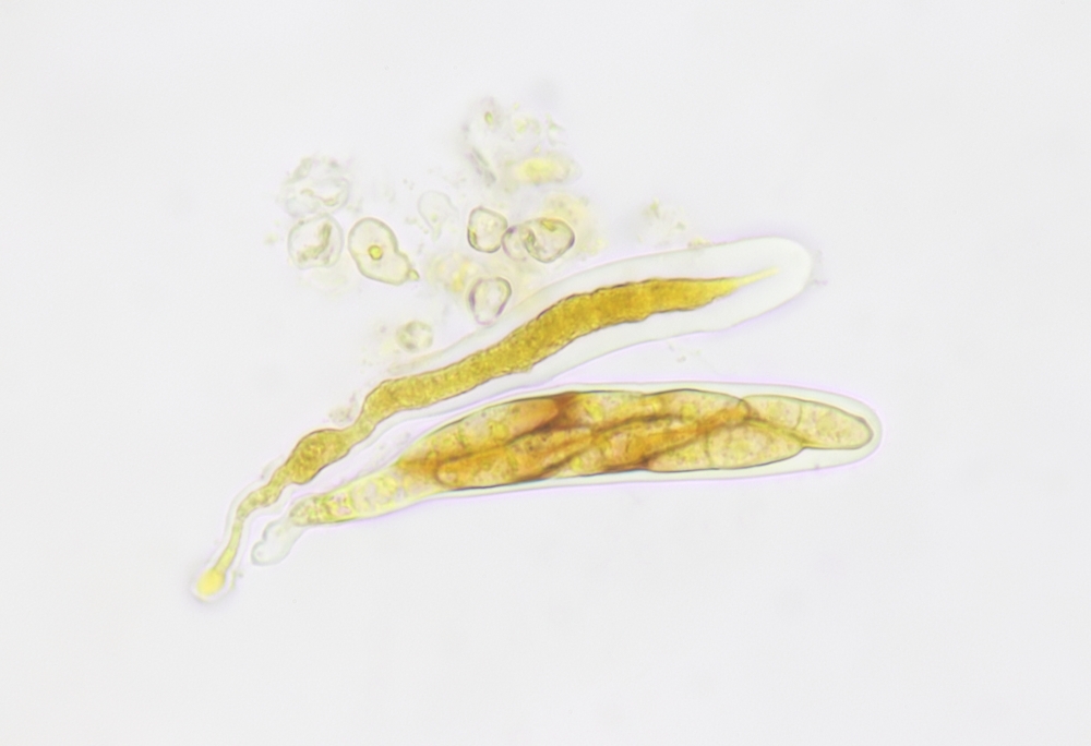 Verunsichert hatte mich der Befund, dass in der ersten Probe alle Schläuche mehr als 8 Sporen hatten. Die heutige Nachkontrolle zeigt normale Verhältnisse.