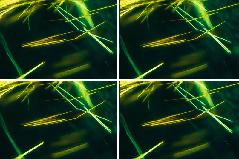 diese Raphiden sind eine Herausforderung – defokussiert meint man immer, mächtige Balken vorzufinden, tatsächlich dann haarfeine Nadeln ...