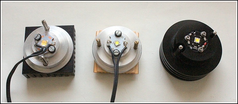 - 3 verschiedene LEDs (LED Kühlkörper habe ich mir drehen lassen, zusätzliche Kühlrippen aufgeklebt)