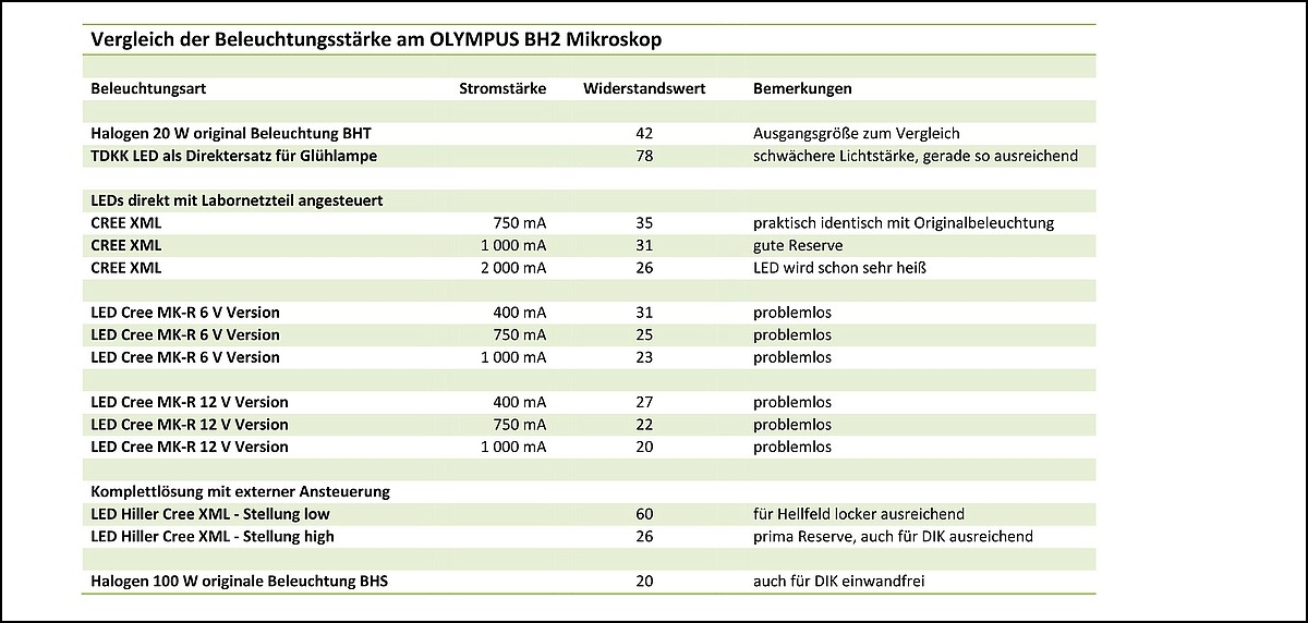 LED Einsatz für OLYMPUS BH2 - ein Vergleich von Möglichkeiten