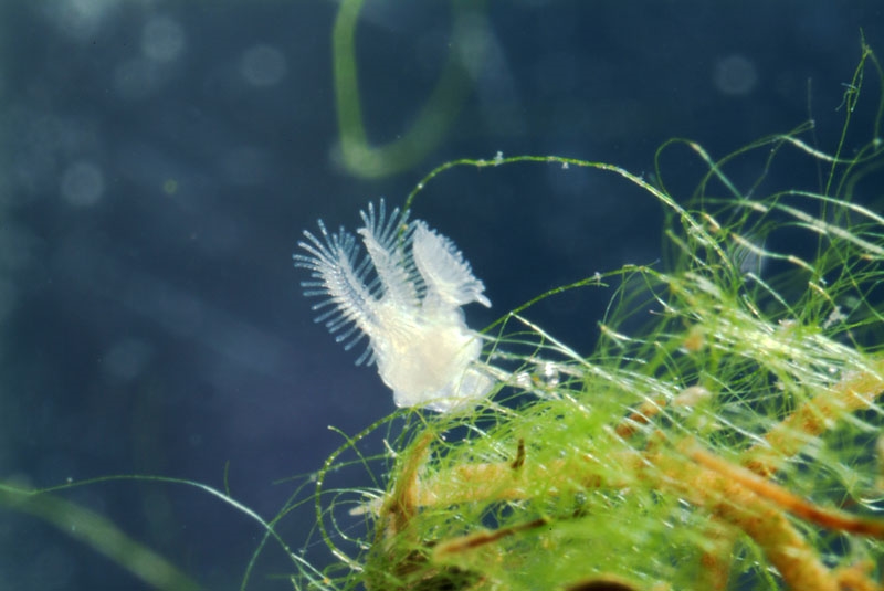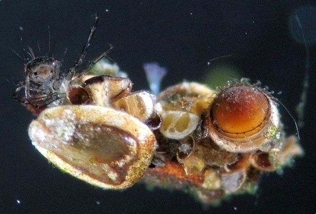obwohl ich kein Winterfreund bin, haben die Frosttage auch ihre Vorteile: Die Moostierchen werden wieder zum Schlüpfen angeregt. Die Ernte fällt dieses Jahr bei mir zwar nicht so reichlich aus, aber ich hatte einen Helfer beim Sammeln, wie Bild 2 und 3 zeigt. Er führt die Cristadella und Paludicella? auch noch gleich spazieren. Ob es ihnen gefällt weis ich allerdings nicht.