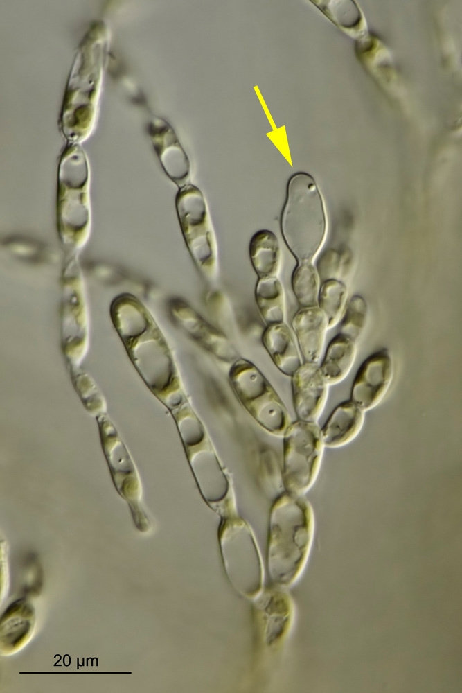 die Spermatien werden an den Fadenspitzen abgeschnürt.