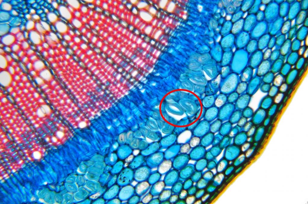Die Zellen in Bild 18 sind m.E. sklerenchymatische Faserzellen, die nicht verholzt und damit biegsam sind. Sie geben dem Spross eine gewisse Elastizität und Festigkeit und verhindern so ein einfaches Brechen.