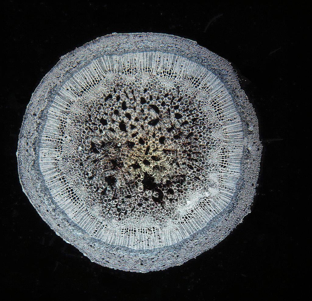 Bild 08 Ungefärbter Schnitt, Übersicht, Dunkelfeld, DunkGold-Wolfsmilch, Euphorbia polychroma