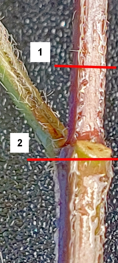 1 = Querschnitt – Spross; 2 = Querschnitt - Knoten