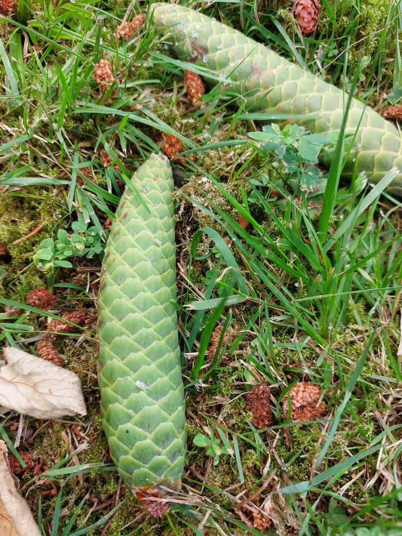 Die Zapfen entwickeln sich nur im oberen Teil der Krone. Sie reifen ab Oktober, können aber noch ein weiteres Jahr am Baum hängen.