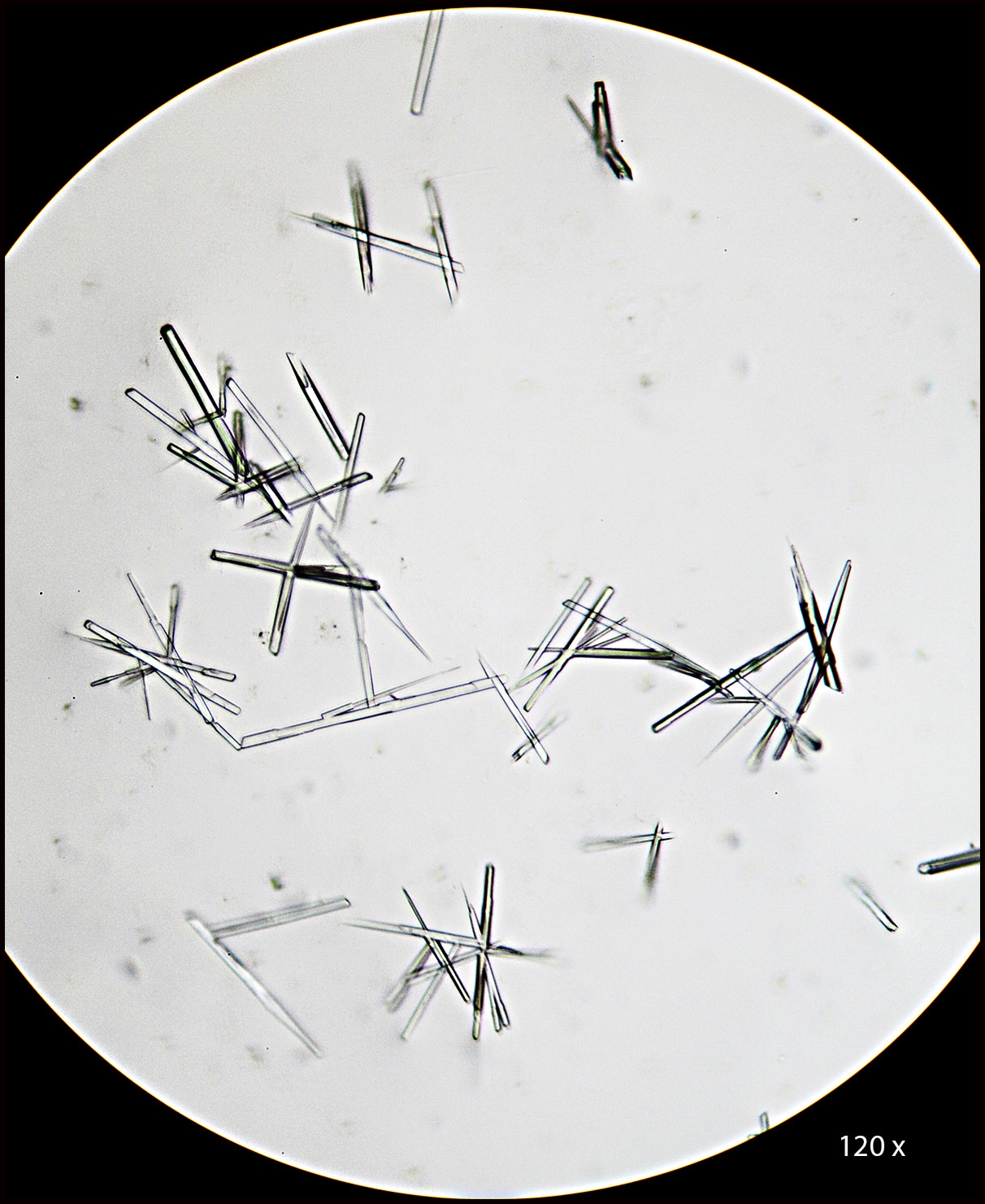 Nach kurzer Zeit bilden sich in großer Zahl die typischen Kristalle des Natrium-niobats [ 4Na2O*3Nb2O5*16H2O ], daß im Gegensatz zum Kalium-niobat in verdünnter Kalilauge schwerlöslich ist.