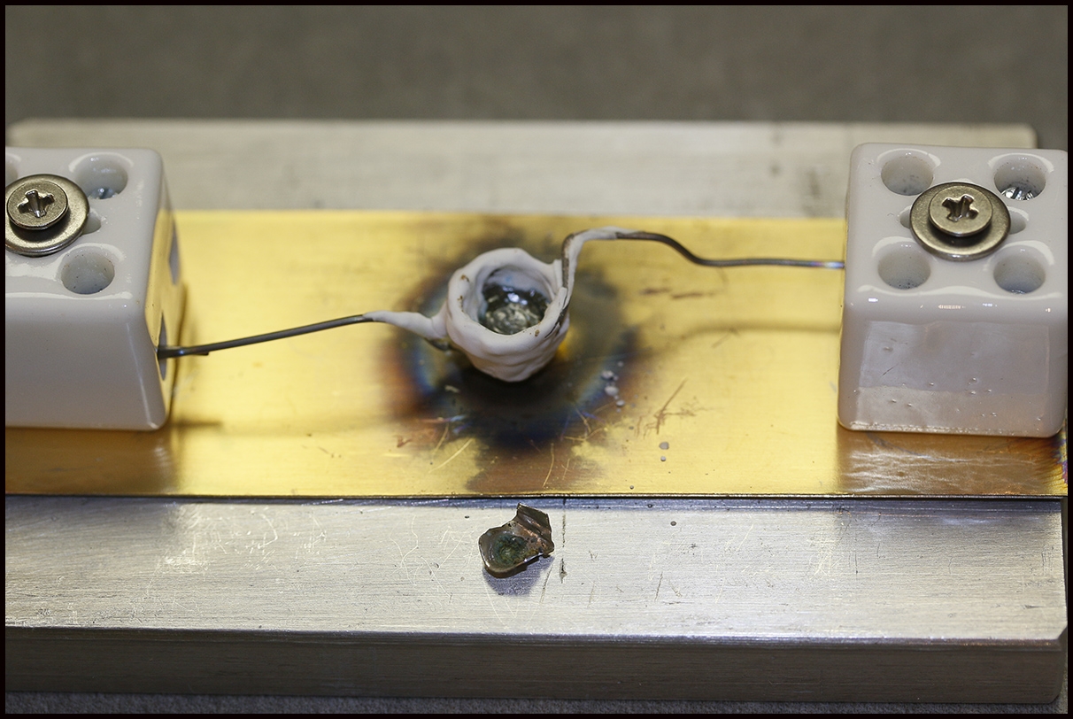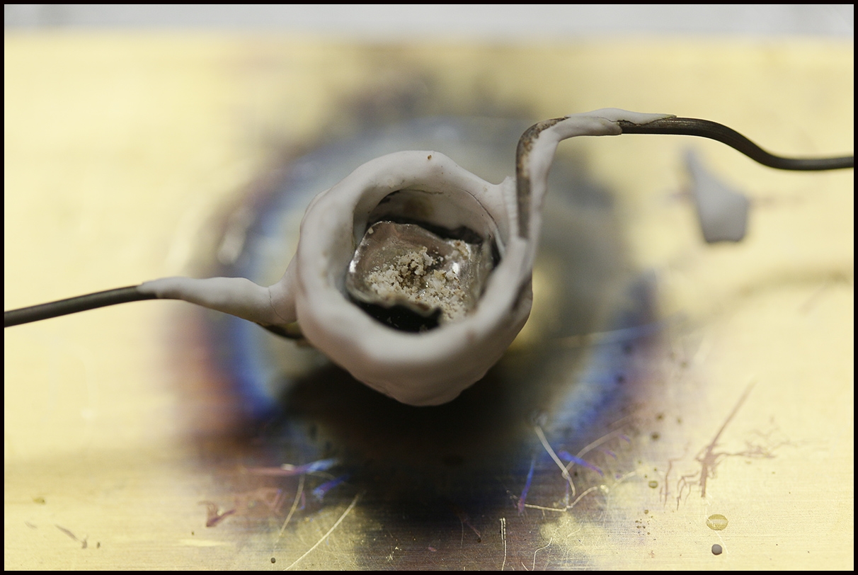 Nach Abkühlung, Entnahme des Platin-Tiegels.