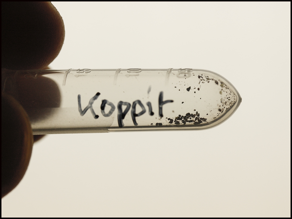 Florian war so nett, mir eine kleine Probe (wenige mg) seines jüngst in einem Fundort des Kaiserstuhls "abgebauten" Koppit-haltigen Minerals zu überlassen, um nachzuweisen, daß es auch wirklich Niob-haltig ist.