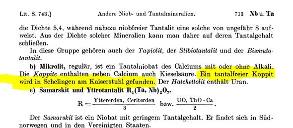 Tantal-Verbindung ist gegeben. Nach meinem Wissen ist aber Tantal im Koppit des Kaiserstuhls nicht vorhanden.