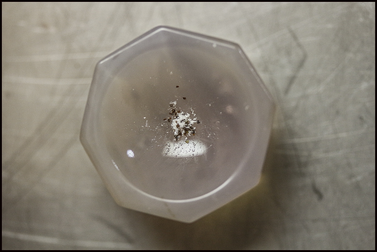 In einem kleinen Achat-Mörser vor dem Verreiben der schnell wasserziehenden Masse.