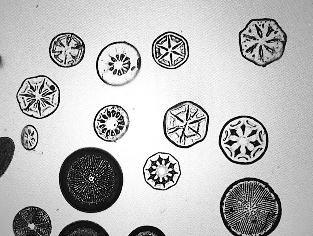 Ja, du hast das mit den Auxosporen richtig verstanden. Über fossile Diatomeen und Mikrogeologie weiß ich ehrlich gesagt nichts, aber eine schnelle Suche nach Liostephanos brachte mich zu einem Artikel auf Researchgate. Sie legt nahe, dass die Liostephanos-Formen ein fossiler Abdruck des Inneren von (möglicherweise) Astrolampra-Schalen sind.  Dies erscheint mir nicht so seltsam, da sich kieselhaltige Schalen im alkalischen Meeresmilieu schnell auflösen können, woraufhin sich das Silizium unter kalkhaltigen Bedingungen als kieselhaltiger Ooze wieder niederschlägt. Das letztgenannte Material ist wesentlich widerstandsfähiger gegen die Auflösung als die Astrolampra-Schalen, die als Gussformen dienten.