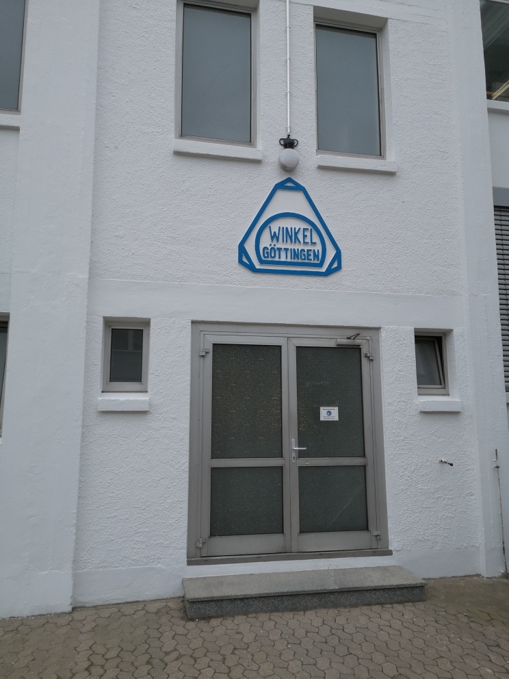 Einer der Eingänge zur Fertigung -jetzt moderner als auf meinem Foto- mit dem schönen WINKEL- Logo.
