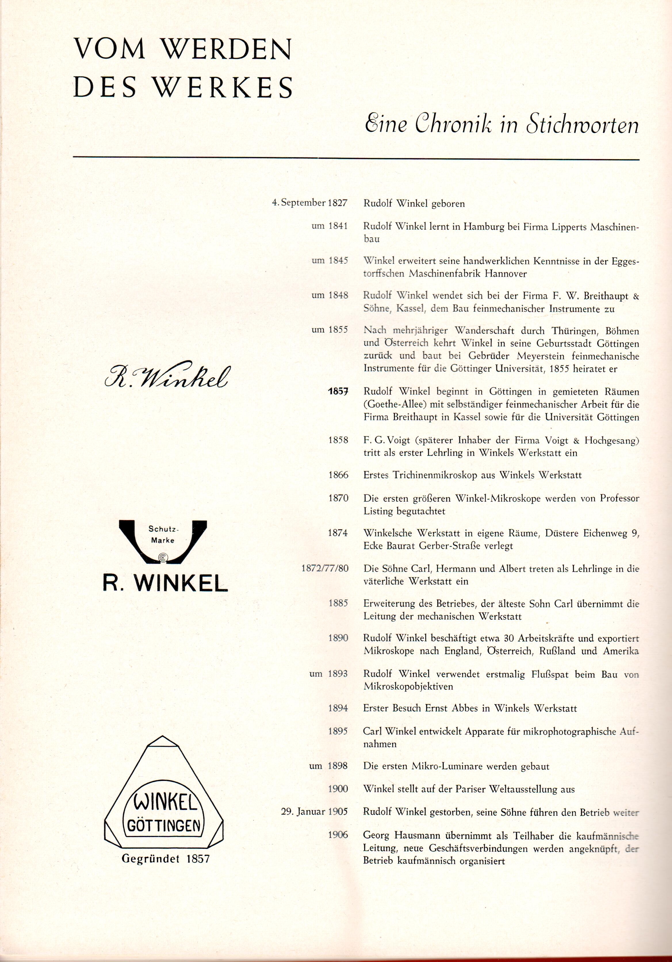 Die Fa. RUDOLF WINKEL wurde am 01. Oktober 1857 von Rudolf Winkel in Göttingen geründet.