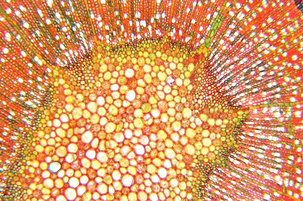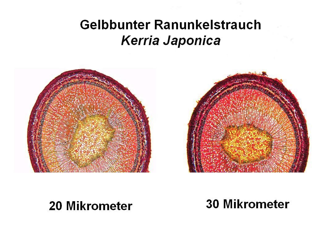 Bild 05 Übersicht, ungefärbter Schnitt, Gelbbunter Ranunkelstrauch (Kerria japonica)