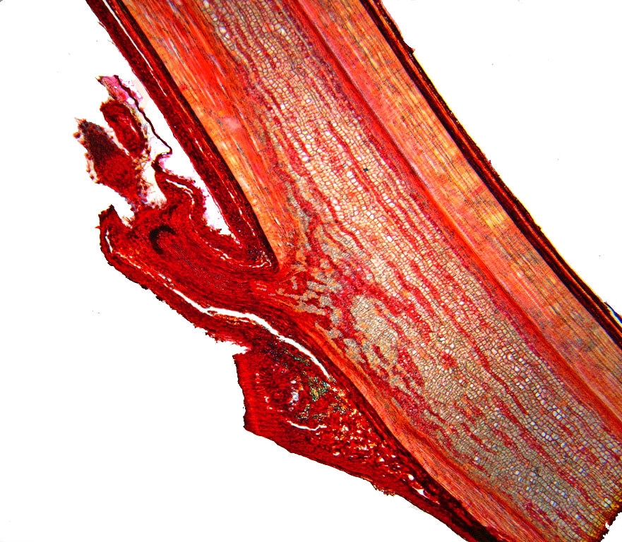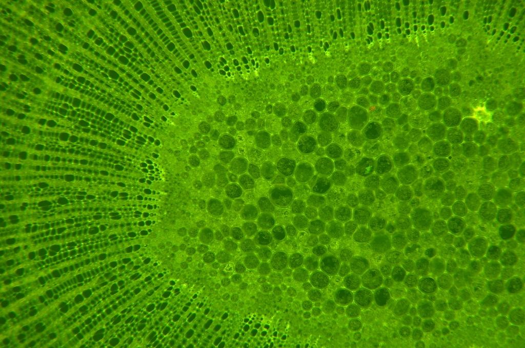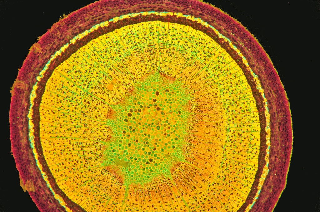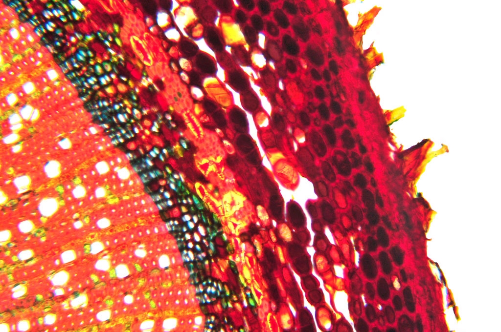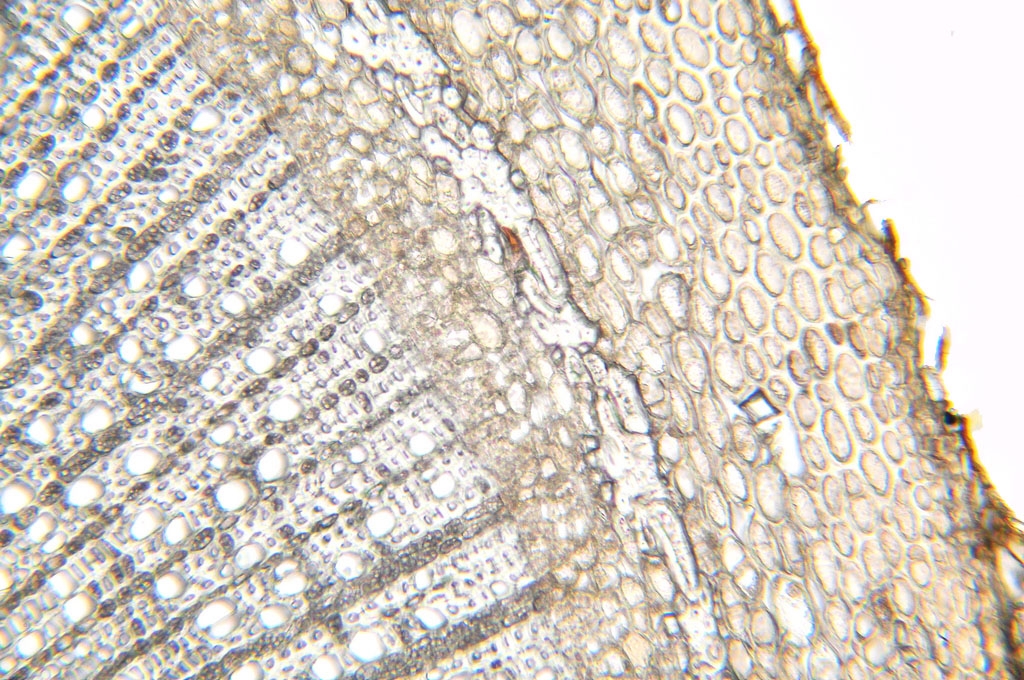 Bild 06 Detailaufnahme, ungefärbter Schnitt, Gelbbunter Ranunkelstrauch (Kerria japonica)