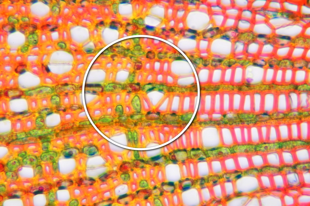 Bild 09 Detailaufnahme, ungefärbter Schnitt, Gelbbunter Ranunkelstrauch (Kerria japonica)
