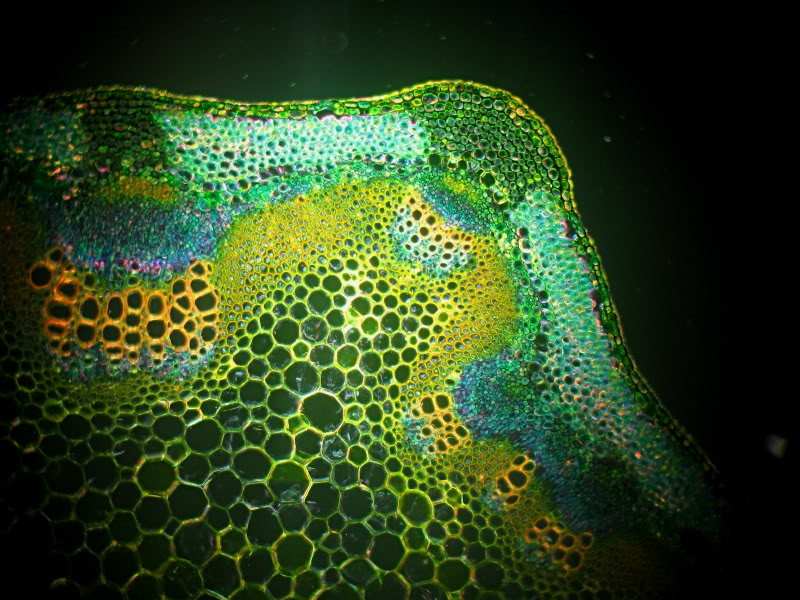 Gestern habe ich mit meinen Standard-Mikroskopen "zum Abschied" noch ein wenig gespielt und verschiedene Fotoadaptionsvarianten durchprobiert. Dabei habe ich Eckhards schönes Dunkelfeldbild als Anregung genommen um die Wegwarte, die ich kürzlich in Fluoreszenz gezeigt habe mal im DF anzuschauen. Ein echtes Farbenwunder!