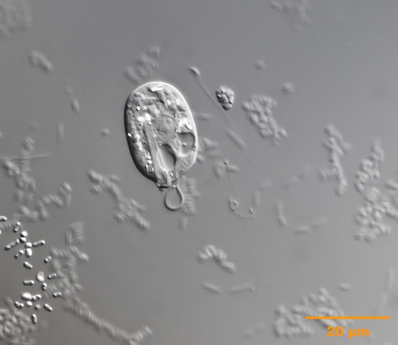 Zellkern und pulsierende Vakuole sind gut zu sehen, neben einigen stark