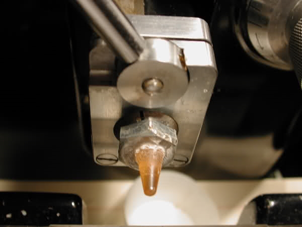auf eine Metallschraube, die in den Mikrotomhalter passt