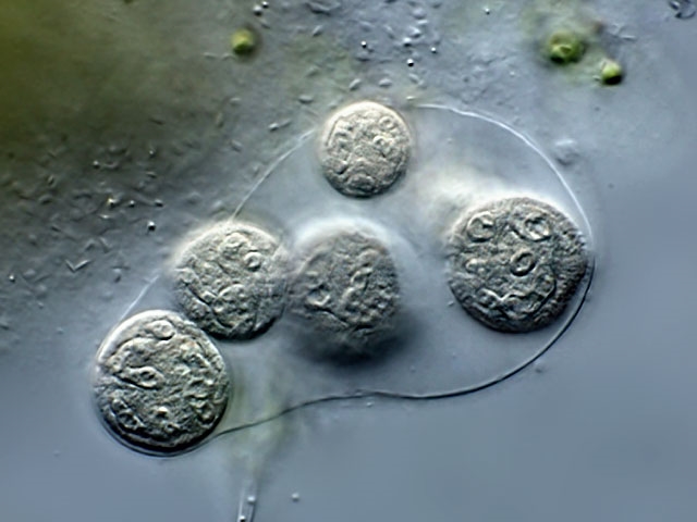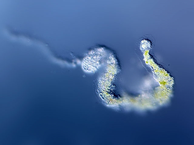 Mir sind solche "Selbstauflösungen" auch schon unters Mikroskop gekommen, konnte diese aber nicht fotografieren. Als ich so etwas das erste Mal beobachtete habe ich mich sehr gewundert weil dieser Ciliat sehr lange dafür brauchte und anfangs auch immer wieder einen neuen Abschluß bildete bis er sich nach etlichen Minuten dann anfing gänzlich aufzulösen.