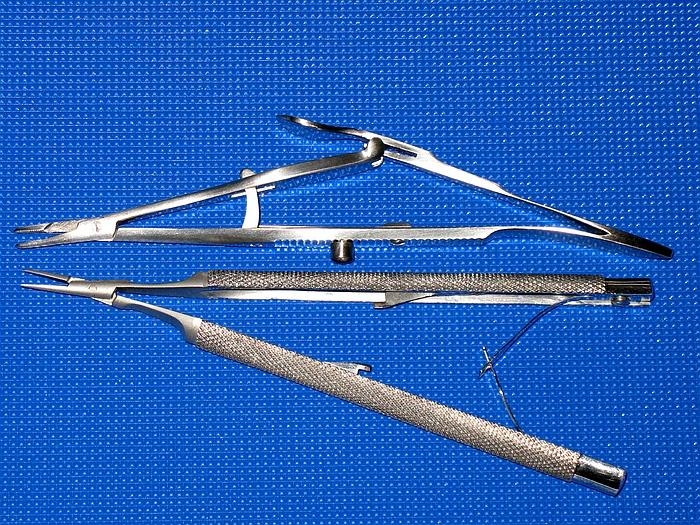 dieser Haken ist ein "Werkzeug", das in der Augenchirurgie eingesetzt wird.