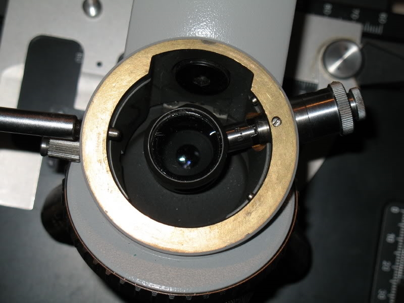 Wobei der Analysator mir nur einmal über den Weg gelaufen ist, aber man kann den Vergrößerungswechsler für diese Schaltachse verwenden. Die Optik wird rausgeschraubt und ein glasgefasster Analysator orientiert eingeklebt. Habe ich sicher 10x gemacht, das bedeutet ich habe eine ganze Schachtel voll der kleinen Linsen übrig! ;)