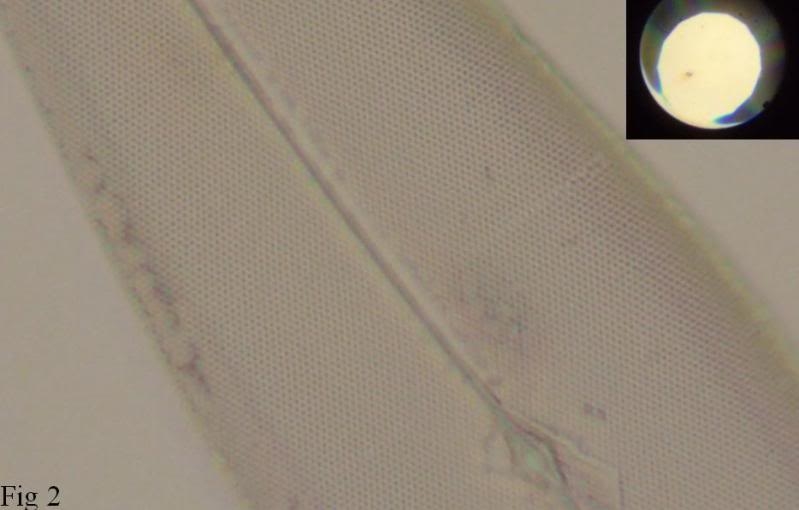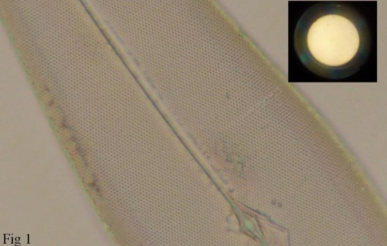 I have an old Winkel-Zeiss microscope of wich the condenser diaphragma cannot be centered, something is misaligned. This is a problem often seen in older microscopes, the cause of which is not clear to me. Anyway, in such cases there is no centered illumination when the condenser iris is used to control the aperture. A solution to this is to open the condenser iris fully and to lower the condenser to the point were 2/3 of the objective back lens is illuminated. With a mirror the light of a fluorescent bulb then can nicely be centered.  While lowering the condenser is seen as bad practice I really see no objections at all. In cases were the condenser iris is misaligned this "bad practice" leads to better results. Have a look at the first picture were fig 1 is with the lowered condenser, fig 2 shows the image from the decentered iris. The specimen is P angulatum taken with the old Winkel-Zeiss objective 42/0.85.