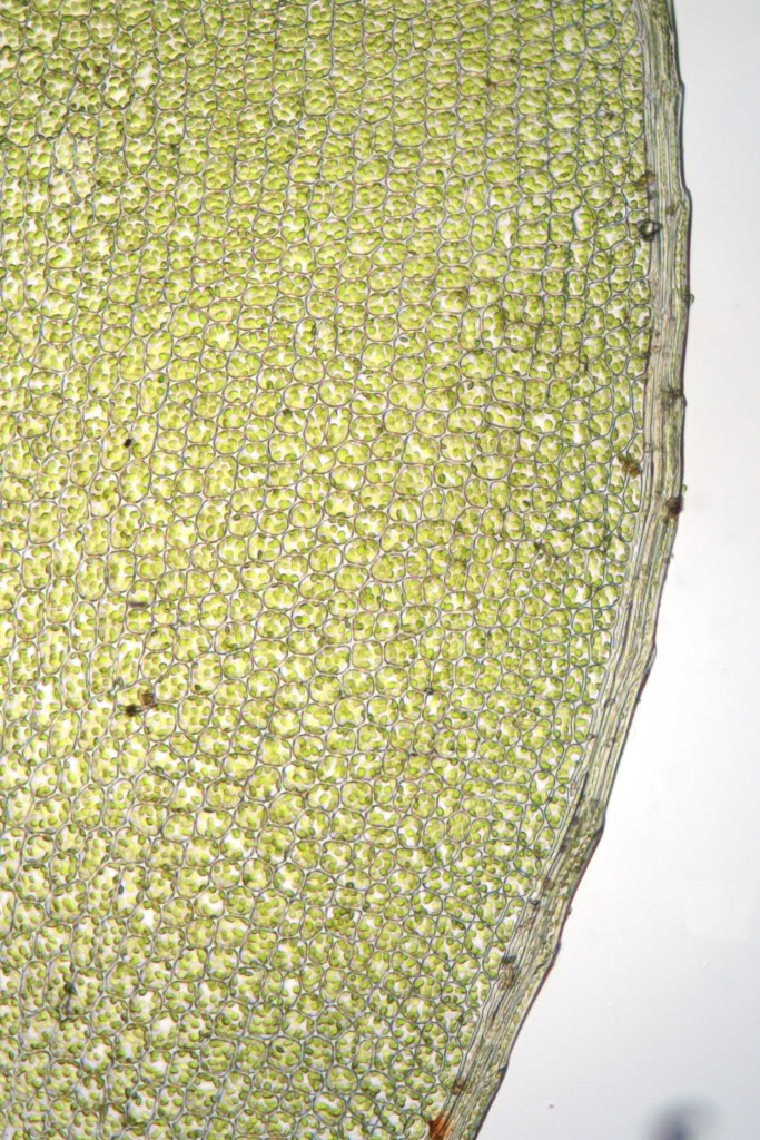 wenn Sie von einer Moospflanze einige Blättchen abzupfen und dann die "gelichtete" Pflanze mikroskopieren, können Sie mit dem Stemi meistens gut den herablaufenden oder nicht herablaufenden Blattgrund sehen.