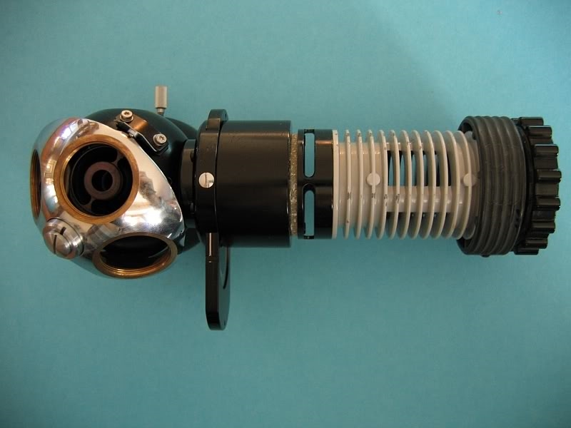 Die Leuchte 15 als Anbauleuchte (beschrieben auf Seite 18 in vorgenannter Produktschrift) gab es in den Ausführungen mit mattiertenm Kollektor 46 72 50 (vornehmlich für Durchlichtaufgaben) und als Lampengehäuse mit unmattiertem Kollektor 46 72 55 (vornehmlich für Auflicht). Diese Anbauleuchte konnte auch mit dem Blitzdoppelkollektor 46 70 20 (mit Blitzschieber 46 80 46) kombiniert werden (für Auflicht wie Durchlicht).