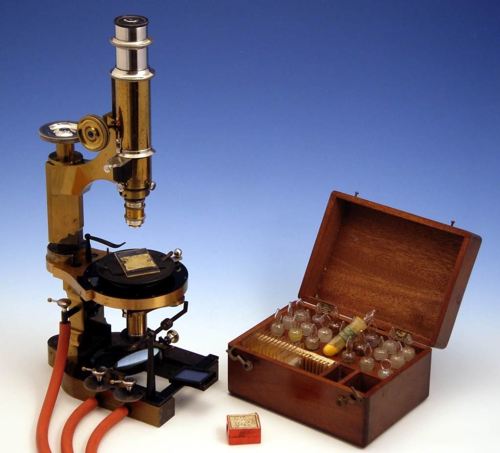 Für seine Untersuchungen hat Lehmann zahlreiche spezielle Mikroskope entwickelt, die vor allem von den Firmen Voigt & Hochgesang in Göttingen (später von Dr. Steeg & Reuter in Bad Homburg übernommen) und Zeiss gebaut wurden. Sie sind sehr exotisch mit angebauten Mikro-Bunsenbrennern (Gasführung in Stativfuß!) für die Erhitzung der Phasen, Wasserkühlung für die Objektive und spezieller Lichtführung zur Erzeugung polarisierten Lichts ohne wärmeempfindliche Polarisationsprismen zu benutzen. Hier sieht man ein solches "Lehmannsches Kristallisationsmikroskop" von Voigt & Hochgesang nebst den zugehörigen Präparaten: