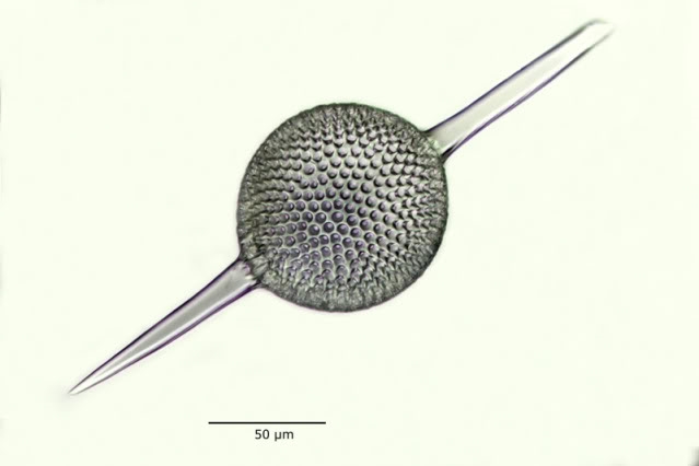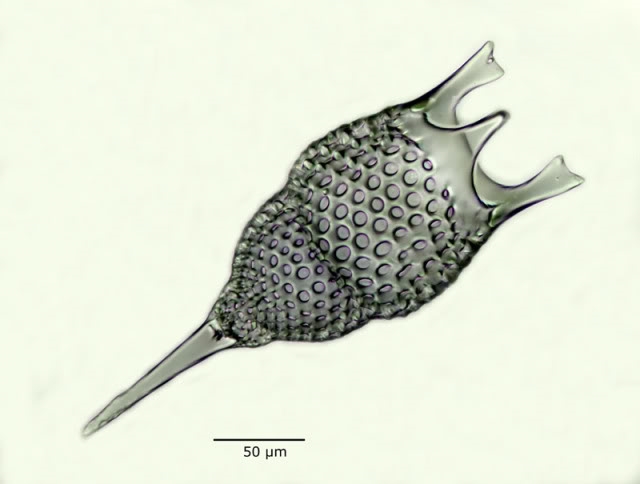 bei der Durchsicht meiner kleinen Probentütchen bin ich auf Trockenmaterial gereinigter Radiolarien aus Barbados gestoßen, das ich wohl mal in der Bucht ersteigert hatte. Unter dem Mikroskop konnte ich einige schöne Exemplare entdecken, die ich sogleich fotografiert habe. Sie stammen alle vom Fuß des Mount Hillaby....