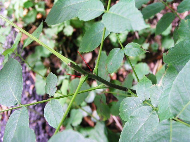 Das Problem hatten wir in den vergangenen Wochen mehrfach: wie kann man unterscheiden, ob man einen Blattstiel oder einen Zweig untersucht? Hier einmal die höchst einfache morphologische Methode. Das Blatt besteht aus Unterblatt und Oberblatt. Das Unterblatt besteht aus Blattgrund und Nebenblättern, so vorhanden; das Oberblatt aus Blattstiel und Spreite. Letzteres kann gefiedert sein und dann sieht es so aus, als säßen viele Blätter an einem Stiel, was aber nicht stimmt. Schauen wir uns also das Blatt einer jungen Esche an: