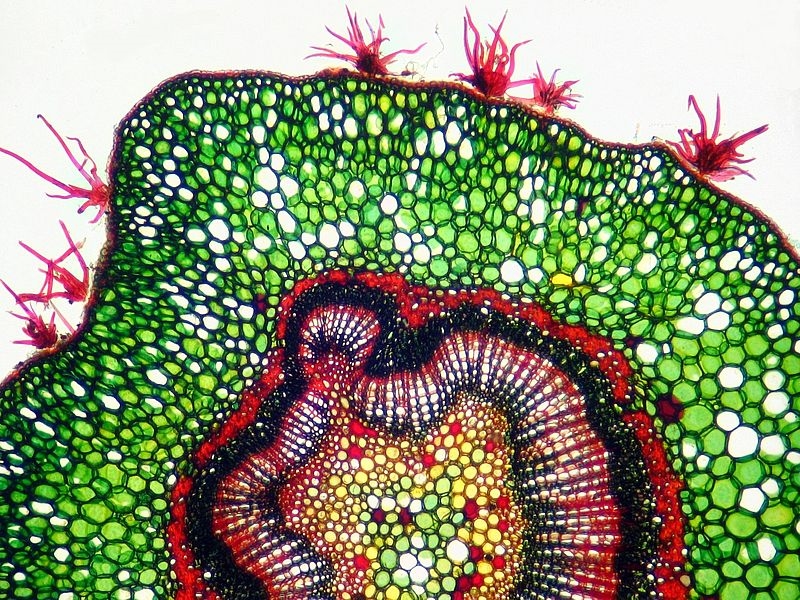 Im Unterschied zu einem Sprossquerschnitt gibt es hier jedoch kein sekundäres Dickenwachstum und somit auch kein Cambium, wie das nächste Bild zeigt.