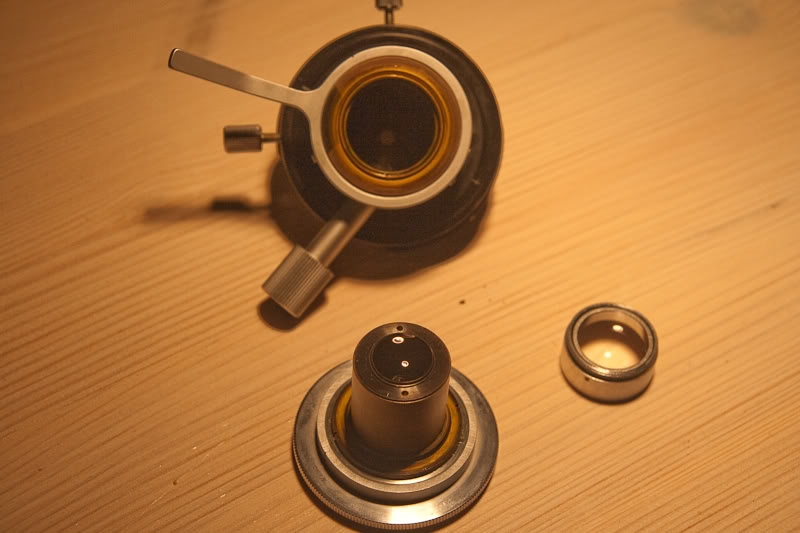 anbei die Bilder zum Zerlegen des Berek-Kondensors - habe es leider vorher nicht geschafft, das Ding zu fotografieren.