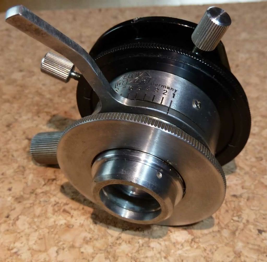 Mein Kollege hat einen verharzten Kondensor eines alten schwarzen Leitz Durchlichtmikroskops. Das Mikroskop hat die Seriennr.: 470352. Nachfolgend 2 Bilder des Teiles: