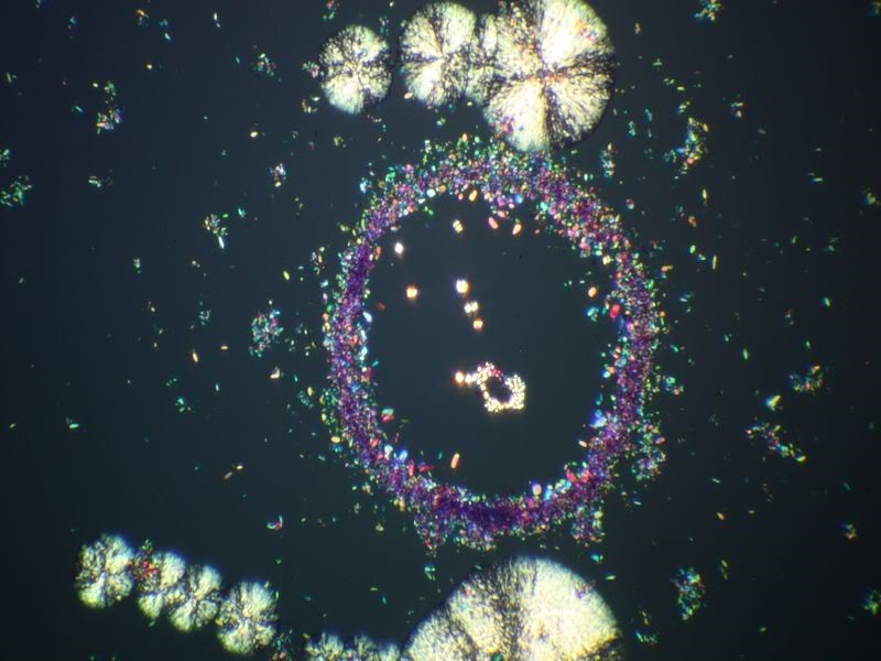 ja, die Substanzen sind sehr interessant auskristallisiert. Es gibt auf dem Objektträger die unterschiedlichsten Bereiche.