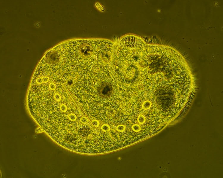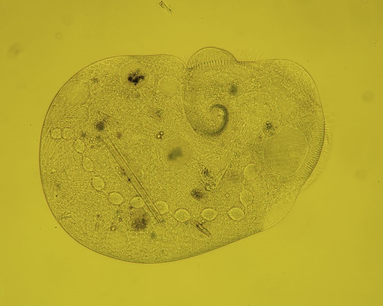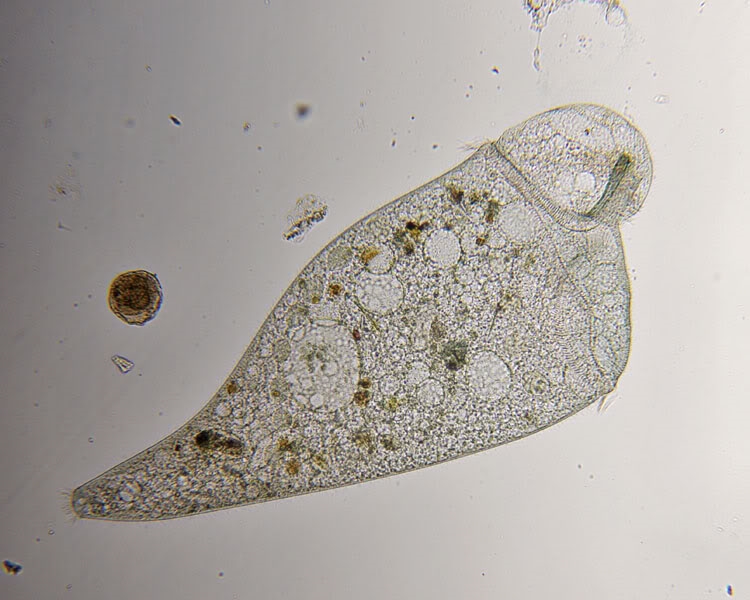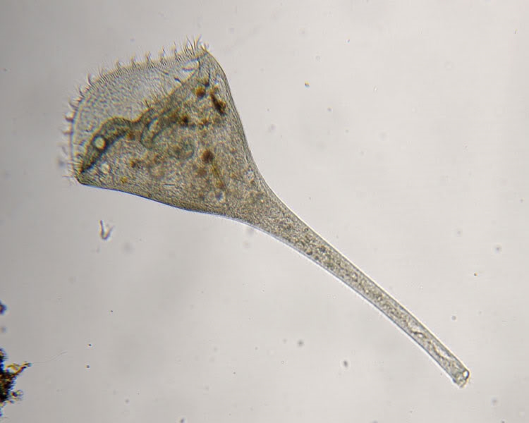 Bis dann zeige ich einige andere Bilder. Jetzt kann ich ab und zu ein Olympos BX Forschungsmikrokop mit Mikroskopkamera an der Universität in Debrecen benutzen, und meine erste Bilder machte ich von diesen Stentor. Ich kann es noch nicht perfekt benutzen, zB weiss ich nicht, warum alles so gelb ist (ohne Filter) und warum man die BW-Balance nicht in Program ändern kann... Also die Bilder sind nicht besonders gut: