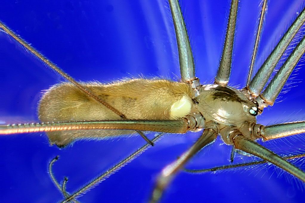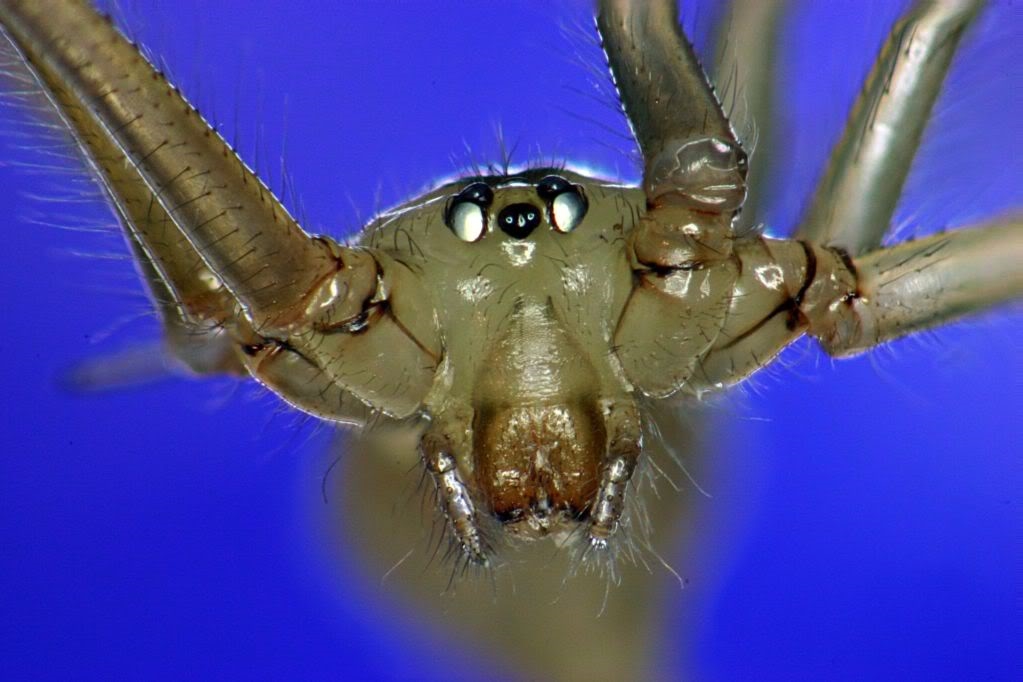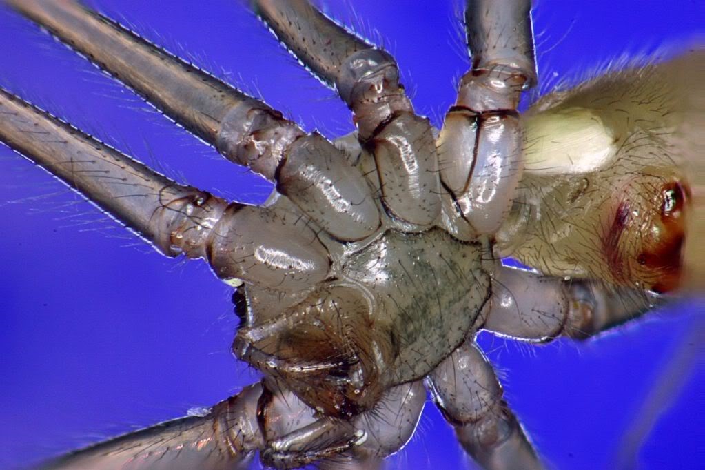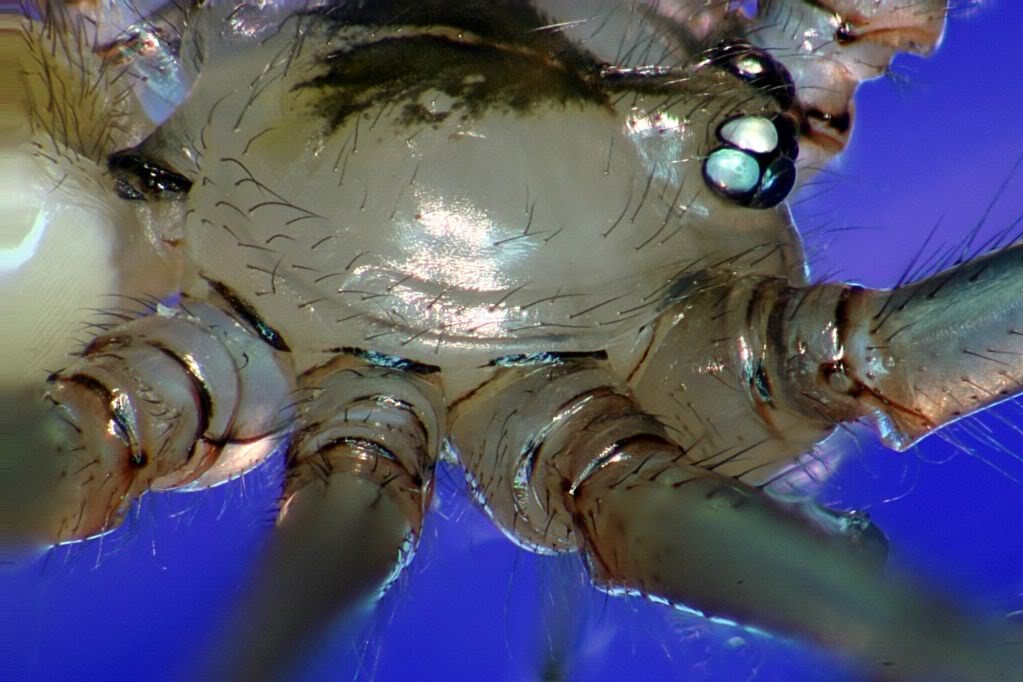 Zitterspinne unter dem Stemi. Das faszinierende bei dieser Spezies sind die Augen.