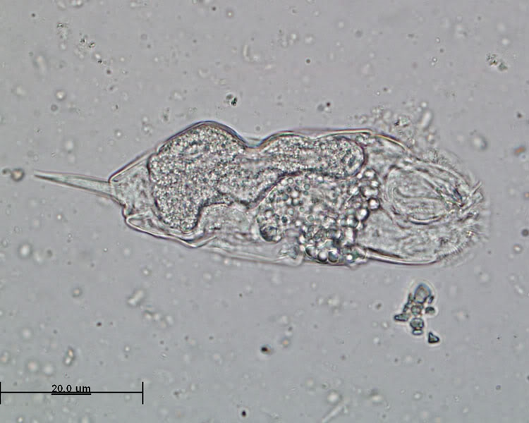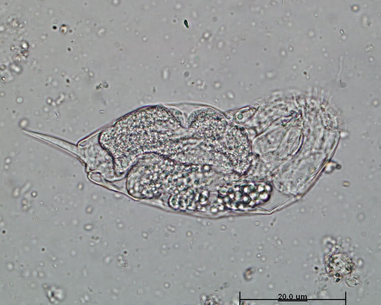 Kann jemand dieses Examplar bestimmen? Ich denke ich habe es schon im Forum gesehen. Vielleicht Cephalodella sp?