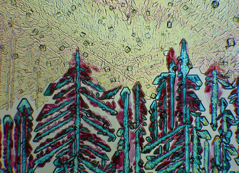 selbst ein dicker Eisregen auf den Winterwald kann (vom warmen Zimmer aus) erfreuen, wenn die Kristalle aus dem Toten Meer kommen: